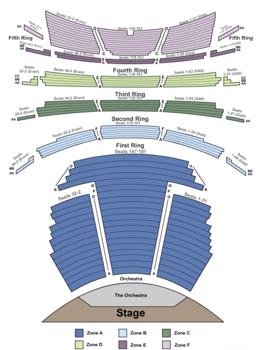 - L’emplacement dans la salle : de l’orchestre au cinquième ring (balcon supérieur)